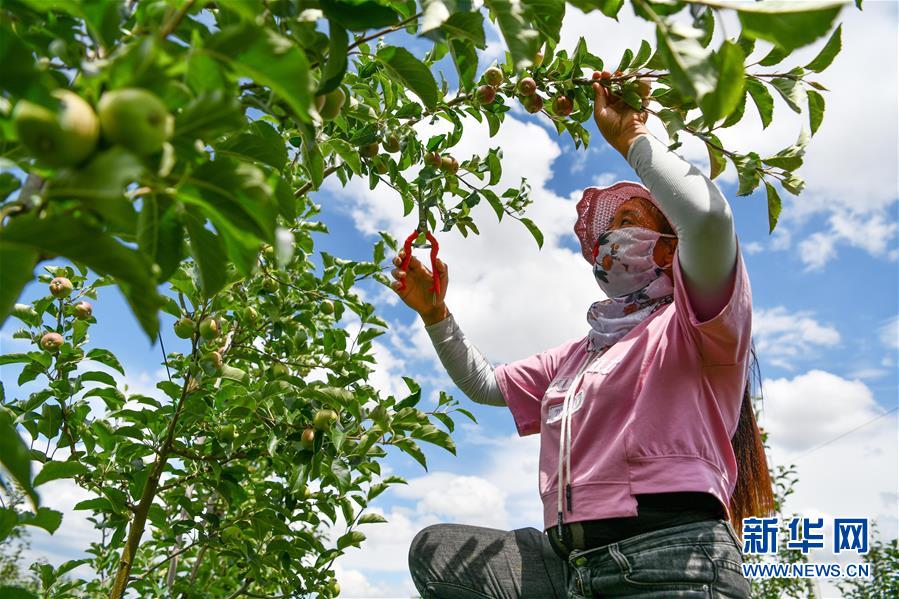 6月11日,農(nóng)民在貴州省威寧縣一處蘋果基地里疏果。近日,貴州省威寧彝族回族苗族自治縣的農(nóng)民搶抓農(nóng)時,對蘋果園進行疏果、除草等田間管理,呈現(xiàn)出一派夏管農(nóng)忙景象。威寧縣蘋果種植面積50余萬畝,蘋果產(chǎn)業(yè)已逐步成為當?shù)剞r(nóng)民增收致富的主導(dǎo)產(chǎn)業(yè)之一。新華社記者楊文斌攝。