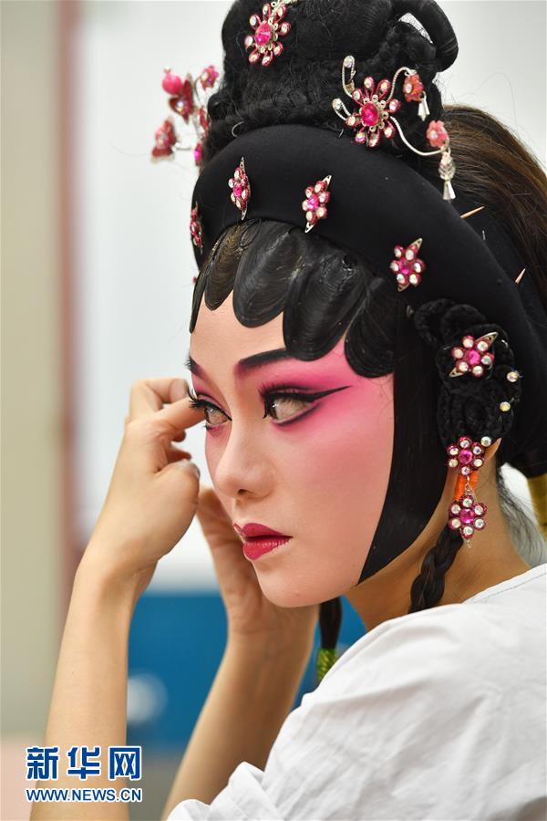 6月12日,廣東粵劇院演員在演出前化妝。當(dāng)日,廣東粵劇院聯(lián)合酷狗網(wǎng)絡(luò)直播平臺(tái)推出“周末睇大戲(線上版)”,將線下劇場轉(zhuǎn)移到線上,在酷狗直播間里呈現(xiàn)粵劇的經(jīng)典劇目,為劇迷們打造一場“云端”盛宴。新華社記者 劉大偉 攝