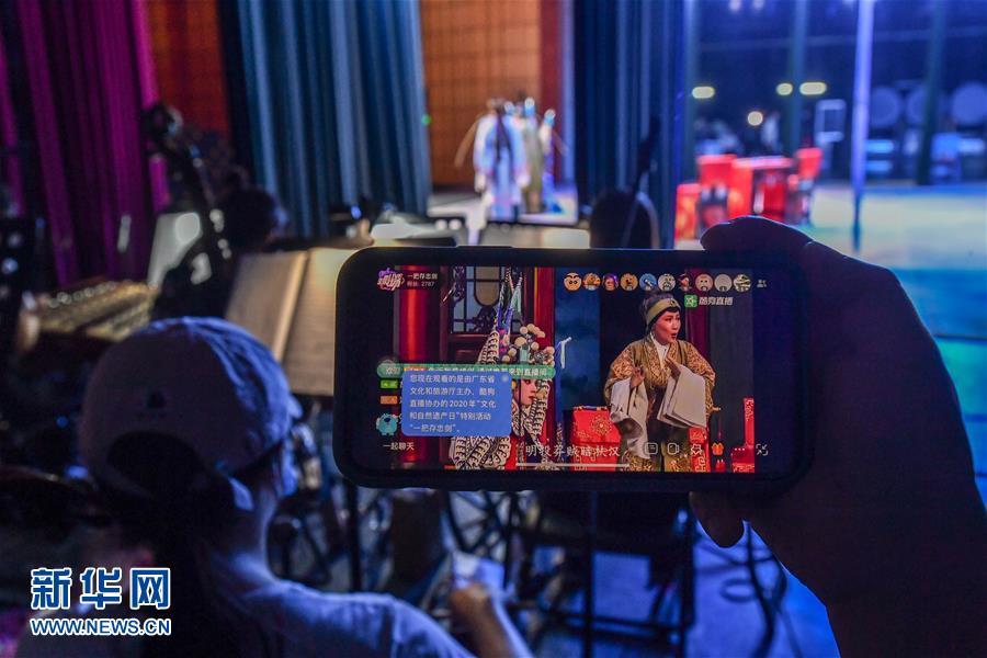 6月12日,粵劇經(jīng)典劇目《一把存忠劍》在酷狗直播間實時呈現(xiàn)。當(dāng)日,廣東粵劇院聯(lián)合酷狗網(wǎng)絡(luò)直播平臺推出“周末睇大戲(線上版)”,將線下劇場轉(zhuǎn)移到線上,在酷狗直播間里呈現(xiàn)粵劇的經(jīng)典劇目,為劇迷們打造一場“云端”盛宴。新華社記者 劉大偉 攝