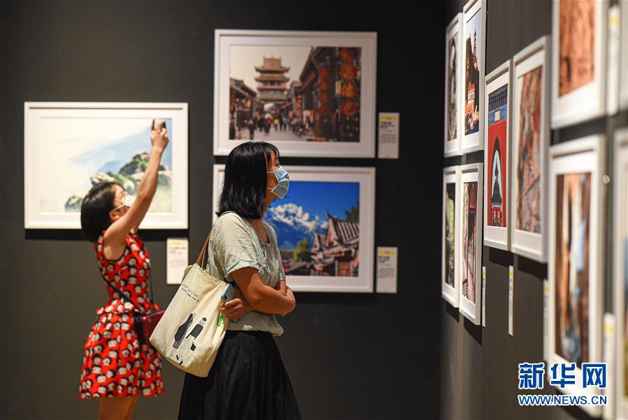 6月13日,觀眾在位于??诘暮D鲜〔┪镳^觀看“地球諧音——世界文化遺產(chǎn)攝影藝術(shù)展”。新華社記者蒲曉旭攝。