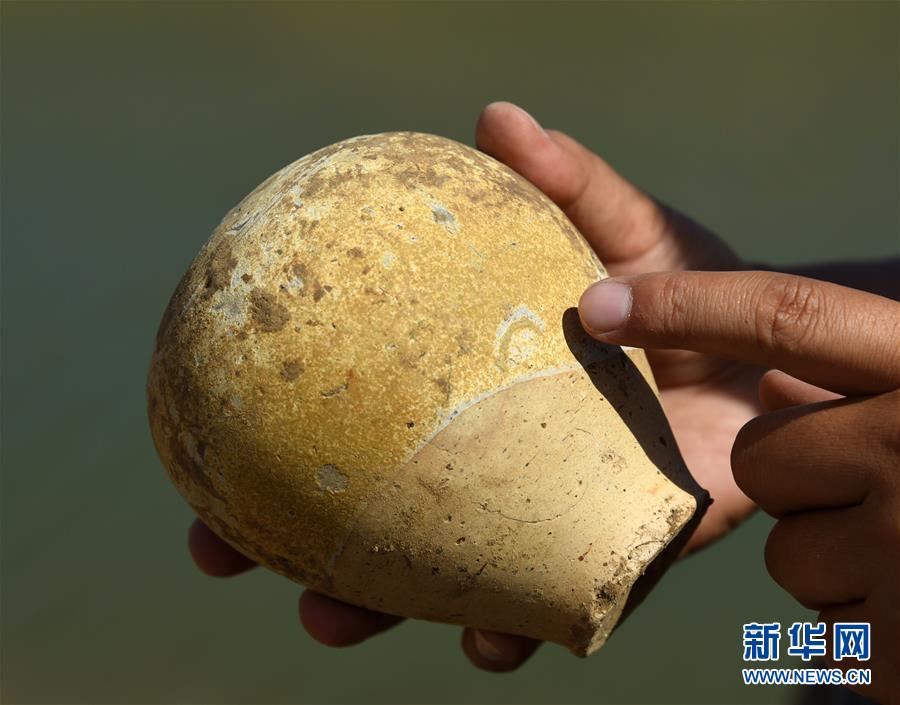 6月14日,在山東小清河章丘段考古發(fā)掘現(xiàn)場,考古工作者展示出土的瓷瓶。近日,濟(jì)南市考古研究所考古工作隊(duì)在對小清河章丘段進(jìn)行考古調(diào)查和勘探時(shí),發(fā)現(xiàn)了13座年代集中在北朝末期至唐朝初期的古墓。新華社記者 王凱 攝