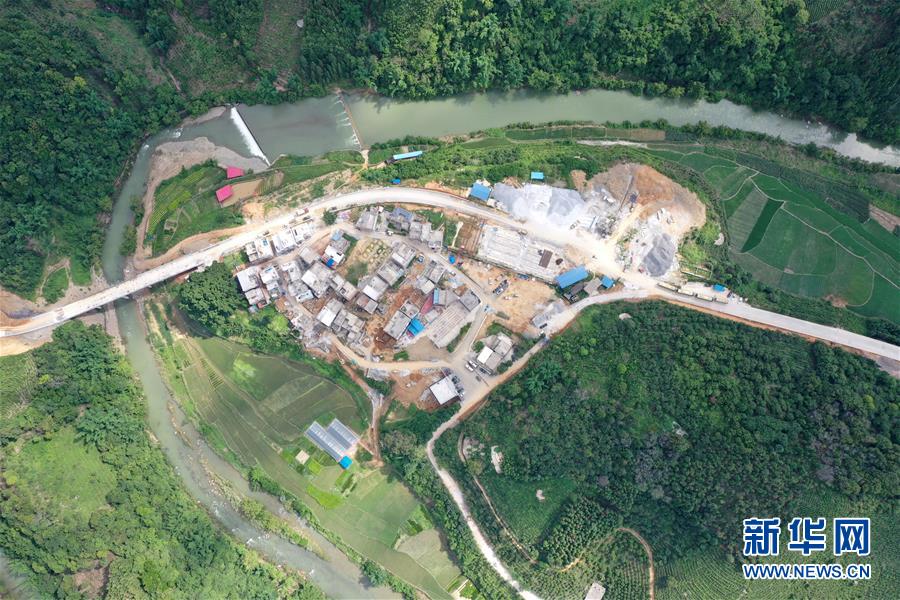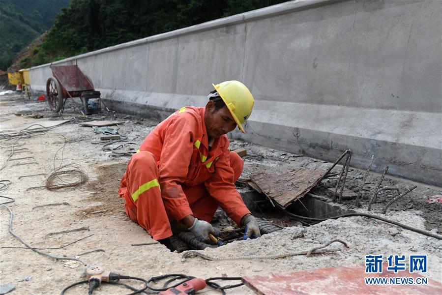 6月17日,工人在百坭村一處橋梁上施工。新華社記者 陸波岸 攝