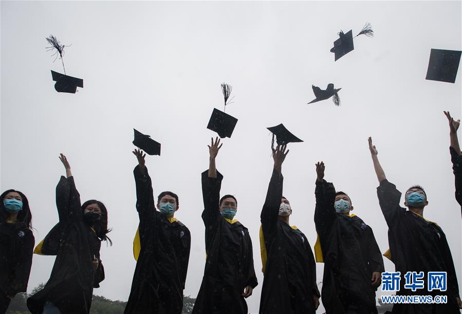 6月20日,在畢業(yè)典禮上,師生共同向新冠肺炎疫情犧牲烈士和逝世同胞默哀。新華社記者 肖藝九 攝