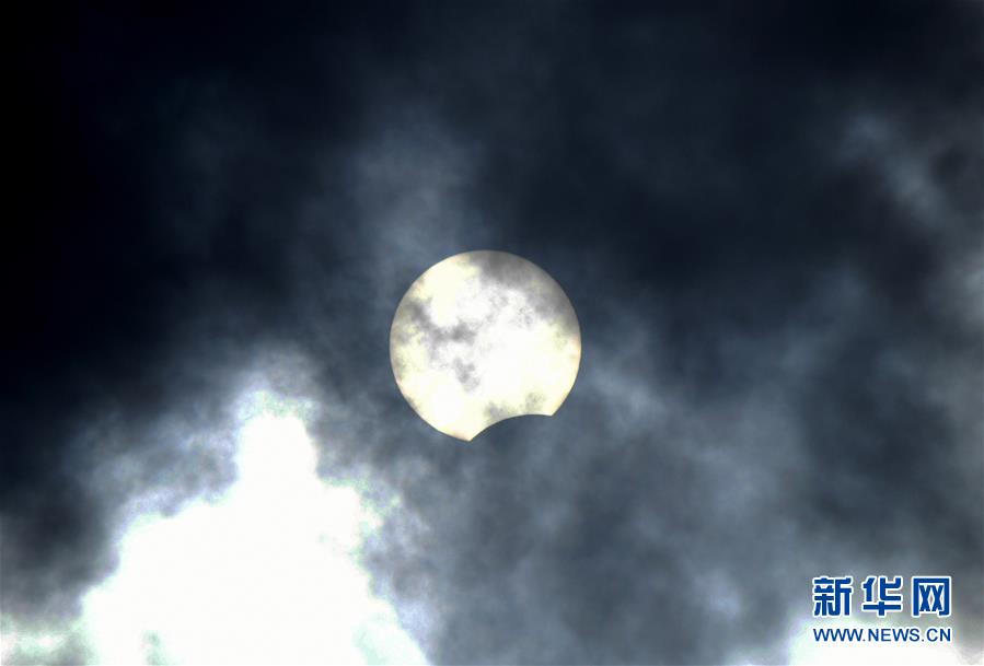在拉薩觀賞到的日食(6月21日攝)?!叭窄h(huán)食”天文景觀于6月21日“夏至日”下午在天宇上演。新華社記者 普布扎西 攝
