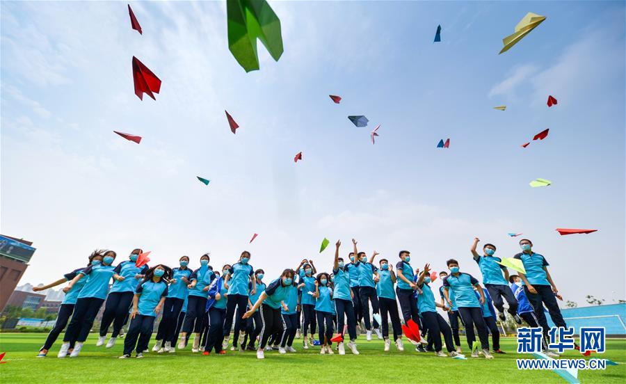 6月22日,河北省邯鄲市邯山區(qū)第一中學(xué)的高三學(xué)生將寫有自己夢想的紙飛機拋向空中。2020年高考臨近,河北省邯鄲市邯山區(qū)第一中學(xué)在積極做好高三學(xué)生復(fù)習(xí)備考的同時,開展多種形式的減壓活動,幫助學(xué)生釋放緊張情緒。新華社記者王曉攝