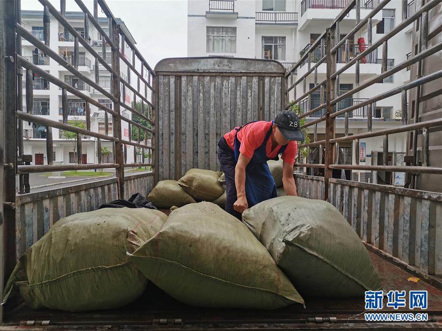 6月18日,在湖南省張家界市桑植縣,康華粽葉扶貧工廠的工人在搬運(yùn)粽葉。新華社記者阮周圍攝