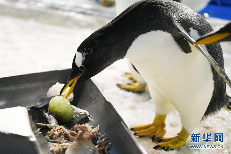 6月24日,哈爾濱極地館的企鵝在享用工作人員送來的美食。當(dāng)日,哈爾濱極地館的工作人員特地準(zhǔn)備了“魚粽”“肉粽”,讓生活在這里的極地動物也品嘗一下端午美食。新華社記者王建威攝
