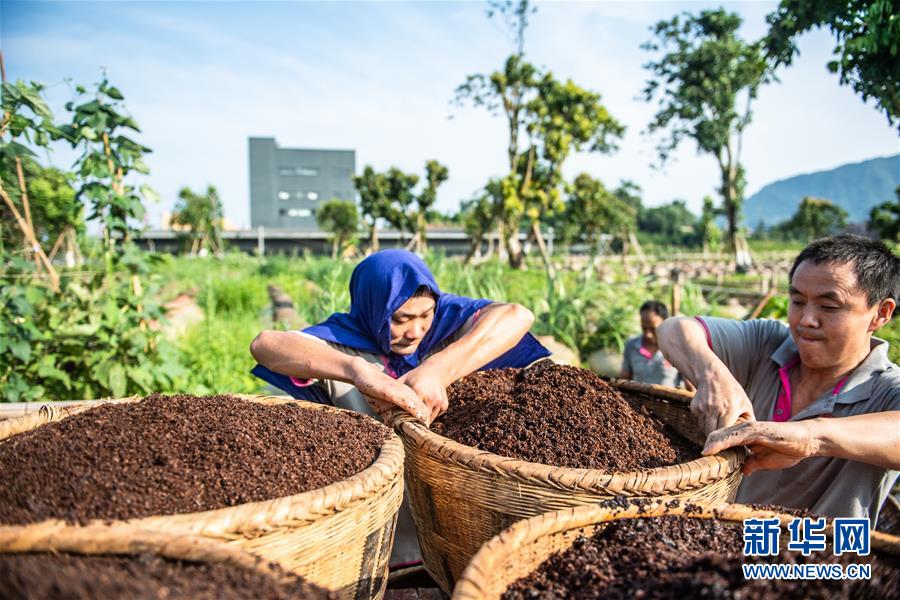6月26日,工人在曾氏曬醋廠搬運醋醅。新華社記者 陶亮 攝