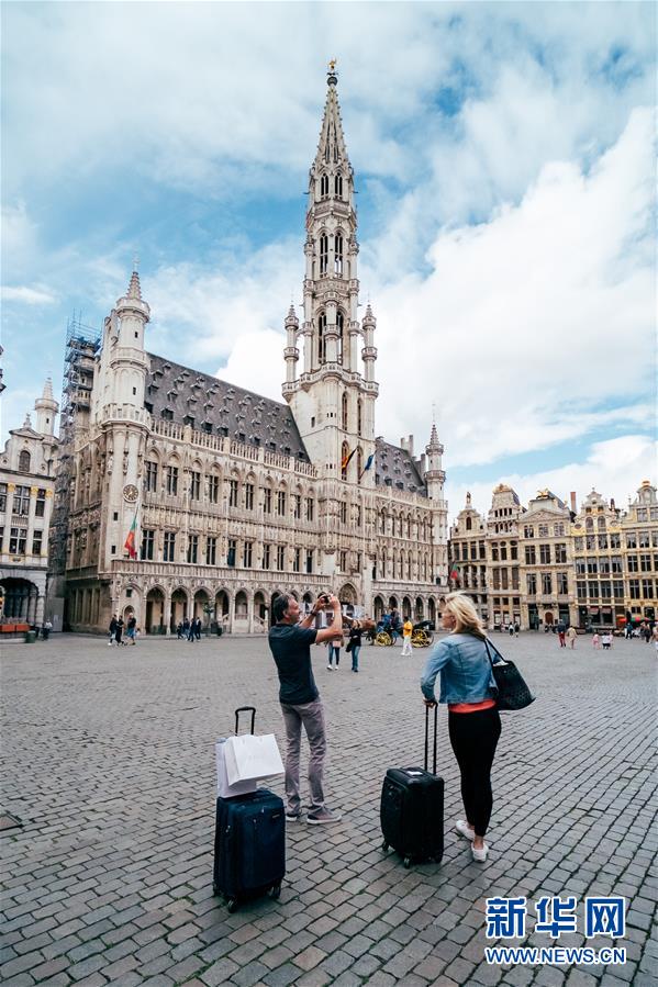 6月28日,兩名來自英國的游客在比利時布魯塞爾大廣場游覽。近日,隨著歐盟國家間逐步開放邊境,比利時布魯塞爾游客逐漸增多。新華社記者張鋮攝