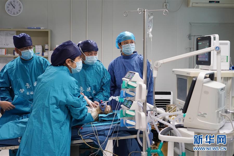 6月29日,醫(yī)護(hù)人員在病房內(nèi)查看移植肝受體猴的體征。日前,多基因編輯豬-恒河猴異種肝、心、腎器官移植在位于陜西西安的空軍軍醫(yī)大學(xué)西京醫(yī)院順利實(shí)施。研究團(tuán)隊(duì)使用豬內(nèi)源性逆轉(zhuǎn)錄病毒(PERV)敲除的13個(gè)基因修飾豬作為供體,將一個(gè)供體豬的肝、心、腎分別移植給3只恒河猴受體。目前,移植肝和對應(yīng)的受體猴已存活16天,突破國際上的豬-猴輔助性肝移植最長存活時(shí)間記錄。這項(xiàng)研究有助于未來解決器官短缺造成的臨床器官移植發(fā)展受限難題。新華社記者邵瑞攝