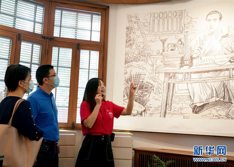 6月30日,復(fù)旦大學《共產(chǎn)黨宣言》展示館黨員志愿服務(wù)隊隊員、復(fù)旦大學馬克思主義學院博士生陸婷婷(右一)在為觀眾講解。陳望道是《共產(chǎn)黨宣言》首個中文全譯本的翻譯者,也是新中國成立后復(fù)旦大學的第一任校長。2018年5月,復(fù)旦大學將陳望道故居改造為《共產(chǎn)黨宣言》展示館,該校一批青年教師和學生組建黨員志愿服務(wù)隊,面向廣大師生和社會各界開展宣講活動。復(fù)旦大學《共產(chǎn)黨宣言》展示館黨員志愿服務(wù)隊名為“星火”,由該校青年教師、博士生、碩士生黨員組成。兩年多時間里,志愿服務(wù)隊共服務(wù)學校及社會各界參觀者近5萬人次,年均講解700多場。新華社記者劉穎攝