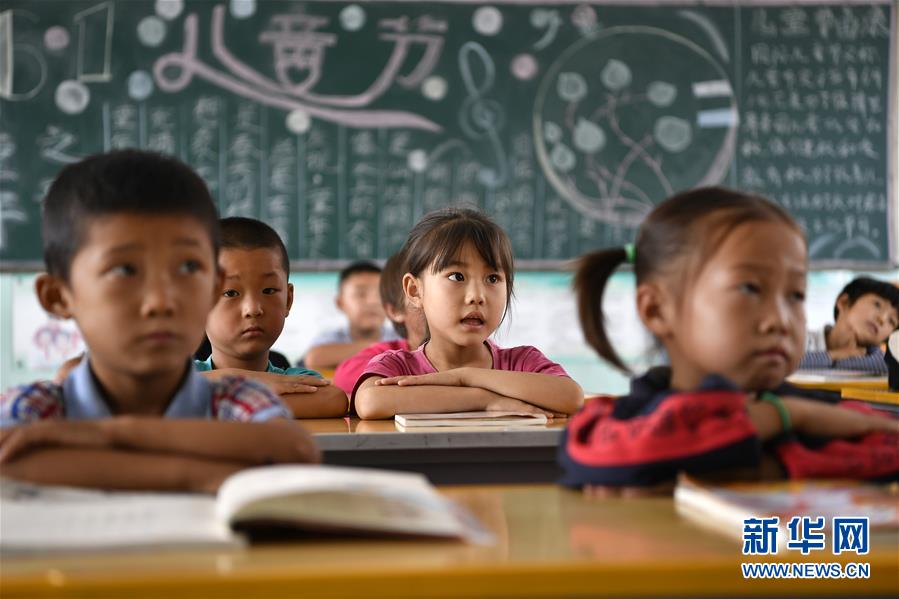 寧夏銀川市永寧縣閩寧鎮(zhèn)原隆村原隆小學,一年級的孩子們在上課(2019年9月3日攝)。新華社記者王鵬攝