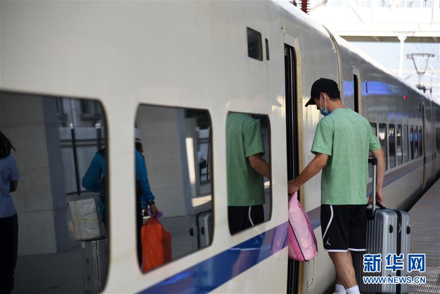 7月1日,旅客在山東章丘站上車。當(dāng)日,2020年全國鐵路暑運(yùn)拉開帷幕。新華社記者王凱攝