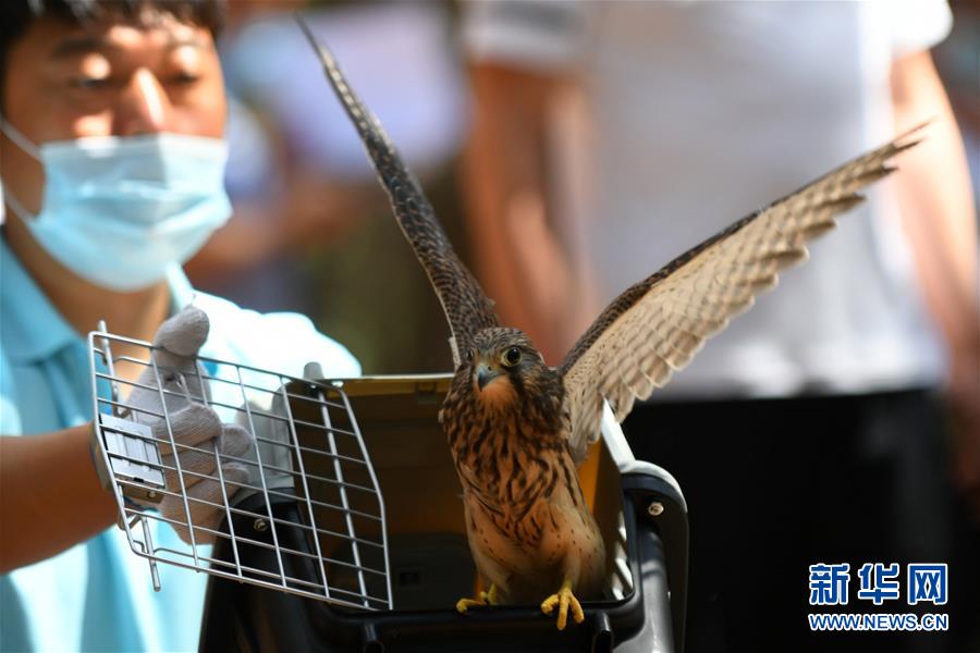 這是7月1日在放飛活動上拍攝的一只紅隼。新華社記者林宏攝