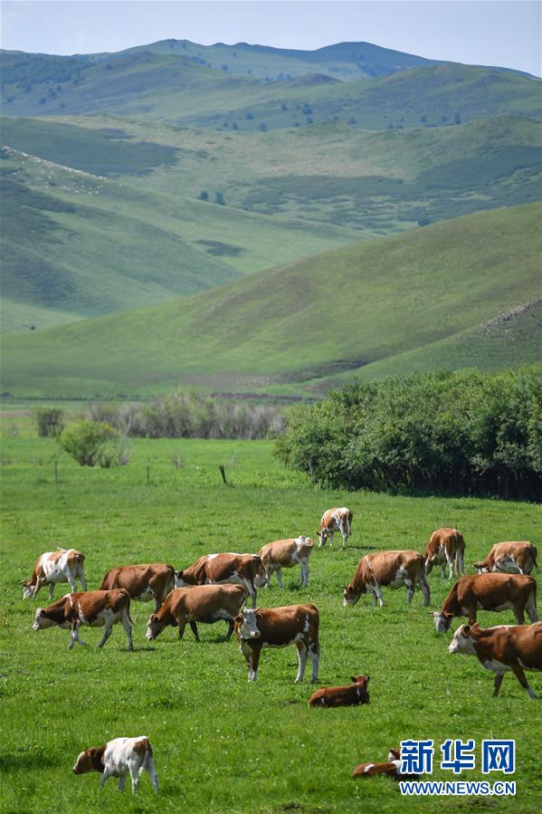 烏蘭毛都草原上的牛群(7月2日攝)。盛夏時節(jié),內(nèi)蒙古興安盟科爾沁右翼前旗的烏蘭毛都草原綠意盎然,風景醉人。烏蘭毛都草原地處大興安嶺南麓,屬丘陵山地草原,風光獨特。新華社記者貝赫攝