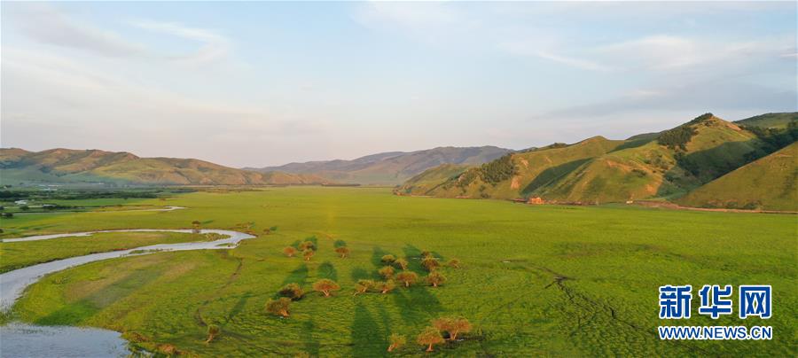 烏蘭毛都草原景色(7月1日無人機(jī)照片)。盛夏時節(jié),內(nèi)蒙古興安盟科爾沁右翼前旗的烏蘭毛都草原綠意盎然,風(fēng)景醉人。烏蘭毛都草原地處大興安嶺南麓,屬丘陵山地草原,風(fēng)光獨(dú)特。新華社記者徐欽攝