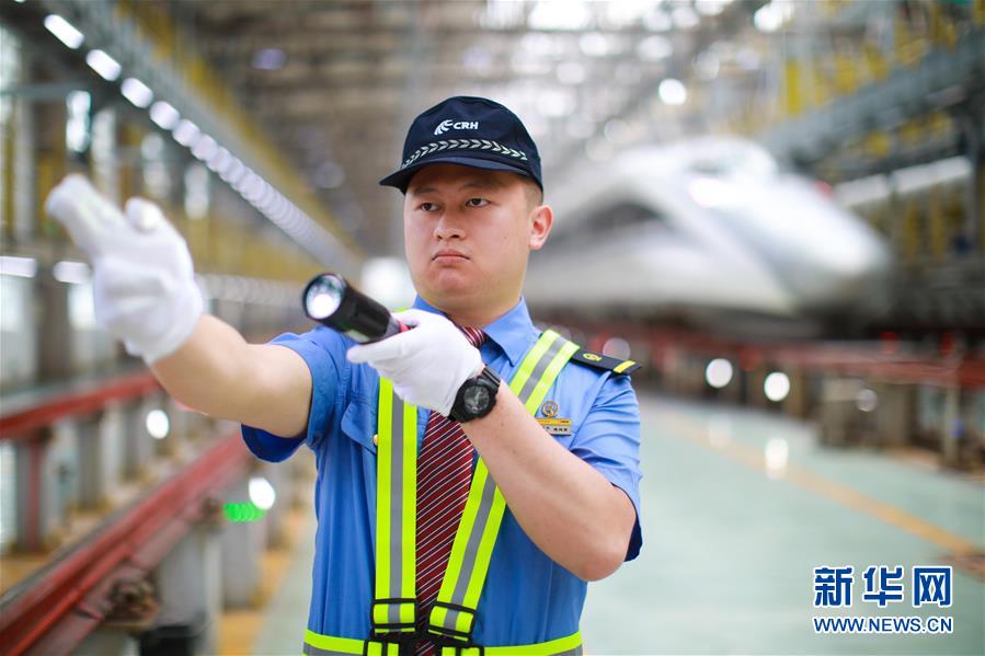 7月3日,擔任首發(fā)列車值乘工作的隨車機械師在貴陽亮相。  新華社記者 劉續(xù) 攝