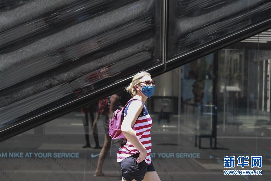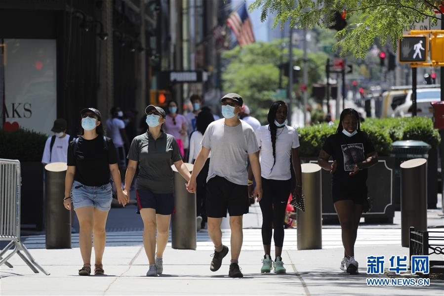 7月4日,人們戴著口罩走在美國(guó)紐約第五大道。當(dāng)日是美國(guó)獨(dú)立日,美國(guó)多地疫情仍面臨嚴(yán)峻形勢(shì)。美國(guó)約翰斯·霍普金斯大學(xué)實(shí)時(shí)統(tǒng)計(jì)數(shù)據(jù)顯示,美國(guó)累計(jì)新冠確診病例4日已超過(guò)280萬(wàn)例。新華社記者王迎攝