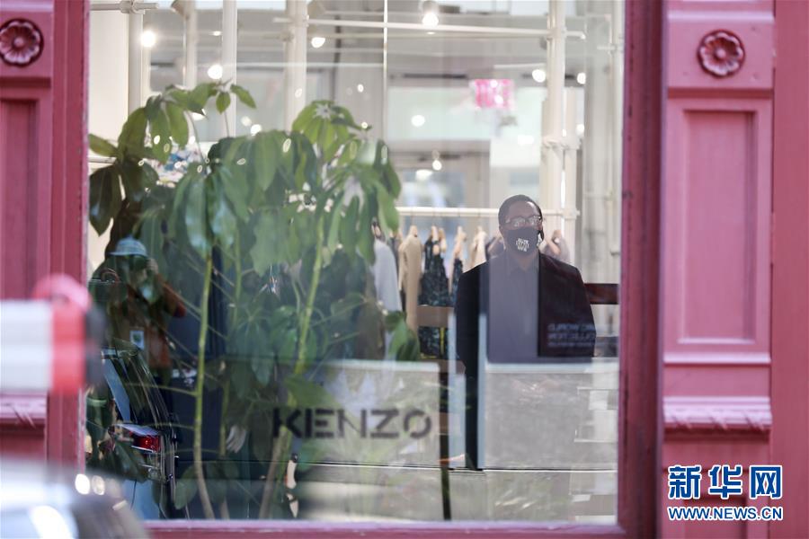 7月6日,美國紐約一家商店的工作人員在等待顧客。新華社記者王迎攝