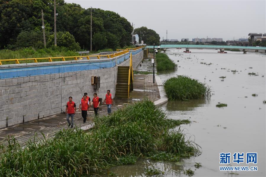7月7日,吳興高新區(qū)幻溇村黨員志愿者在巡查河道。近日,位于浙江北部的湖州市遭遇多輪降雨,東部平原河網普遍超警戒水位,水庫山塘高位運行。7月5日12時30分,湖州市人民政府防汛防旱指揮部將防汛應急響應提升至Ⅲ級,要求各地密切監(jiān)測汛情,切實做好各項防范工作,確保安全度汛。新華社記者黃宗治攝