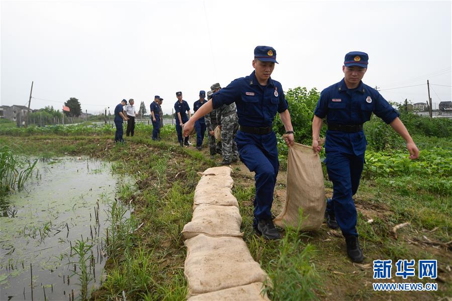 7月7日,吳興區(qū)消防救援大隊隊員在織里鎮(zhèn)曹家籪村幫助村民加固防洪堤。近日,位于浙江北部的湖州市遭遇多輪降雨,東部平原河網普遍超警戒水位,水庫山塘高位運行。7月5日12時30分,湖州市人民政府防汛防旱指揮部將防汛應急響應提升至Ⅲ級,要求各地密切監(jiān)測汛情,切實做好各項防范工作,確保安全度汛。新華社記者黃宗治攝