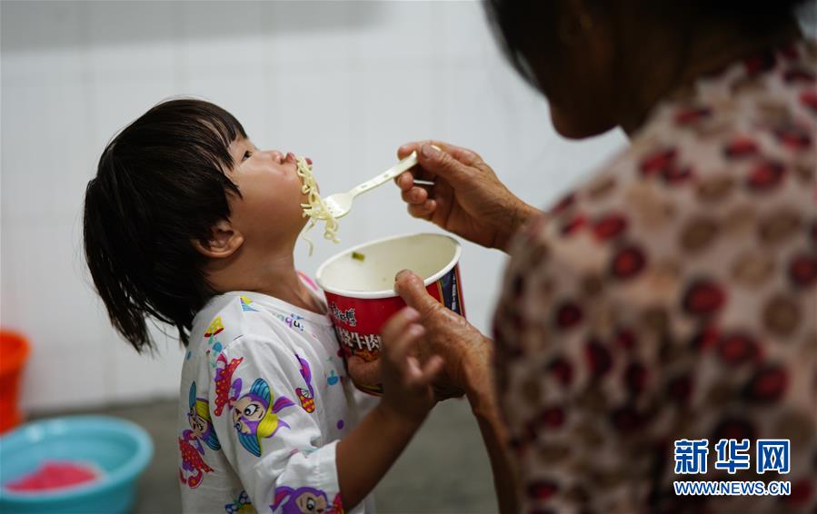 7月9日,村民在給小朋友喂飯。當(dāng)日,江西鄱陽(yáng)縣鄱陽(yáng)鎮(zhèn)因洪水受災(zāi)的村民被轉(zhuǎn)移到多個(gè)集中安置點(diǎn)。在鄱陽(yáng)縣五一中心學(xué)校安置點(diǎn),志愿者和工作人員接到任務(wù)后不到十小時(shí)內(nèi),為被轉(zhuǎn)移村民布置了28間教室,供519人安頓,并為村民發(fā)放褥子、床單、枕頭、盒飯、飲用水等物資。新華社記者周密攝