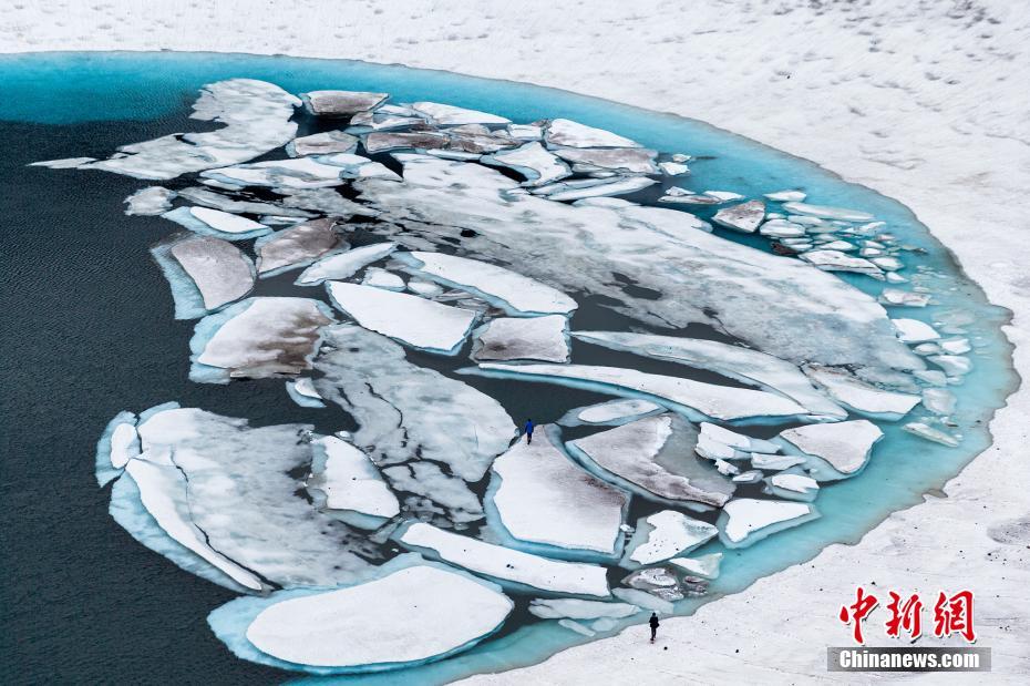 當(dāng)?shù)貢r(shí)間2020年7月7日,俄羅斯堪察加半島,Gorely火山附近的Sredinnoye火山湖。這個(gè)湖斷斷續(xù)續(xù)的,是6月底到8月初融雪形成的。圖片來(lái)源:視覺(jué)中國(guó)