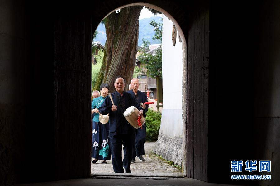 7月4日,浦源村民展示魚祭習(xí)俗。魚祭習(xí)俗是為死去的鯉魚舉行送葬儀式,是浦源村特有的習(xí)俗。新華社記者 姜克紅 攝