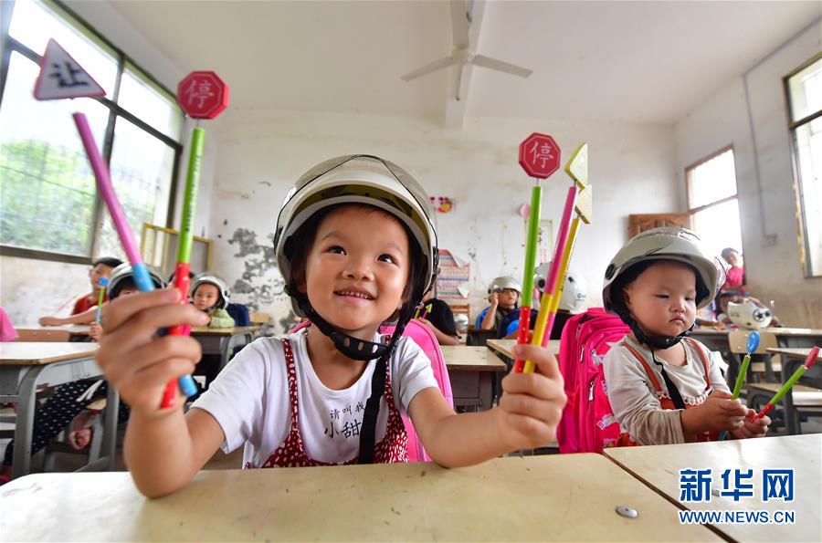 7月11日,小朋友們在交通安全知識課上學習。當日,廣西柳州市交警支隊的民警來到融水苗族自治縣大浪鎮(zhèn)大新村紅鄧屯教學點,開展暑期交通安全教育活動,增強孩子們的安全出行意識。新華社記者黃孝邦攝