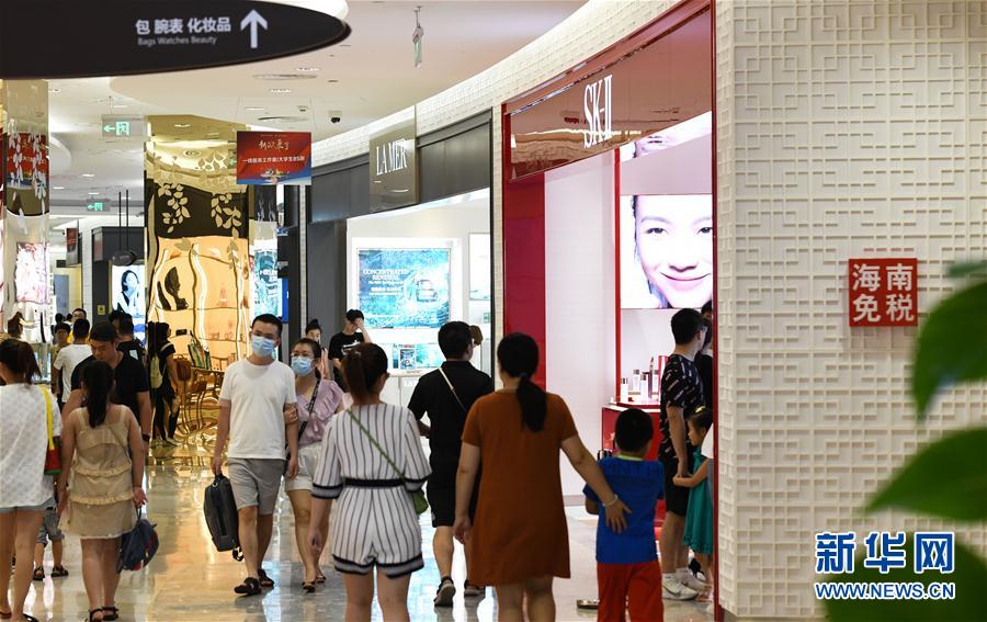 7月12日,游客在??谌赵聫V場免稅店購物。新華社記者 楊冠宇 攝