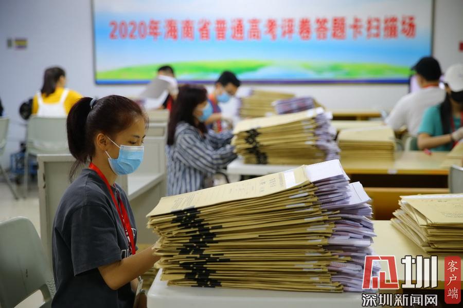 2020年7月13日,在海南師范大學(xué)高考評卷場,工作人員仔細拆封考卷并進行掃描入電腦,整個過程井然有序。在評卷現(xiàn)場的入口,除了有武警把守之外,所有工作人員進入到評卷場均有專人使用手柄式金屬探測器對其進行安檢,并通過身份證識別系統(tǒng)中進行身份識別,方可以進入??忌痤}卡由武警24小時值守,并實行嚴(yán)密的視頻監(jiān)控。
