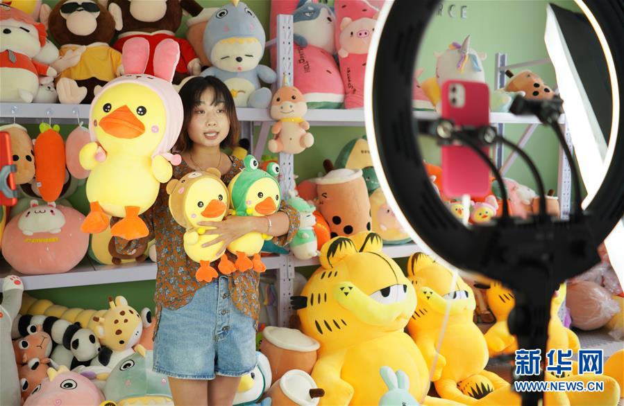 7月13日,河北省內(nèi)丘縣一家玩具生產(chǎn)企業(yè)工作人員通過網(wǎng)絡(luò)直播銷售毛絨玩具。近年來,河北省內(nèi)丘縣積極拓寬農(nóng)村留守婦女就業(yè)創(chuàng)業(yè)渠道,通過開展就業(yè)技能培訓(xùn),對接用工企業(yè)為農(nóng)村留守婦女搭建就業(yè)平臺(tái),吸納農(nóng)村婦女在家門口穩(wěn)定就業(yè)增收,實(shí)現(xiàn)顧家、賺錢兩不誤。新華社記者 朱旭東 攝