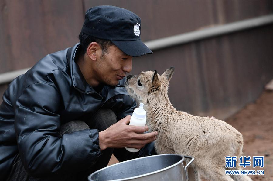 7月7日,三江源國(guó)家公園管理局長(zhǎng)江源園區(qū)可可西里管理處卓乃湖保護(hù)站的工作人員才文多杰在給藏羚羊幼仔喂奶。