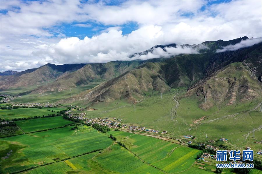 拉薩市林周縣邊交林鄉(xiāng)田園景色(7月14日攝,無人機(jī)照片)。林周縣地處西藏中部,拉薩河上游。夏日時(shí)節(jié),這里水草豐茂,綠意盎然,河流、村落、農(nóng)田組成一幅美麗的田園畫卷。新華社記者 詹彥 攝