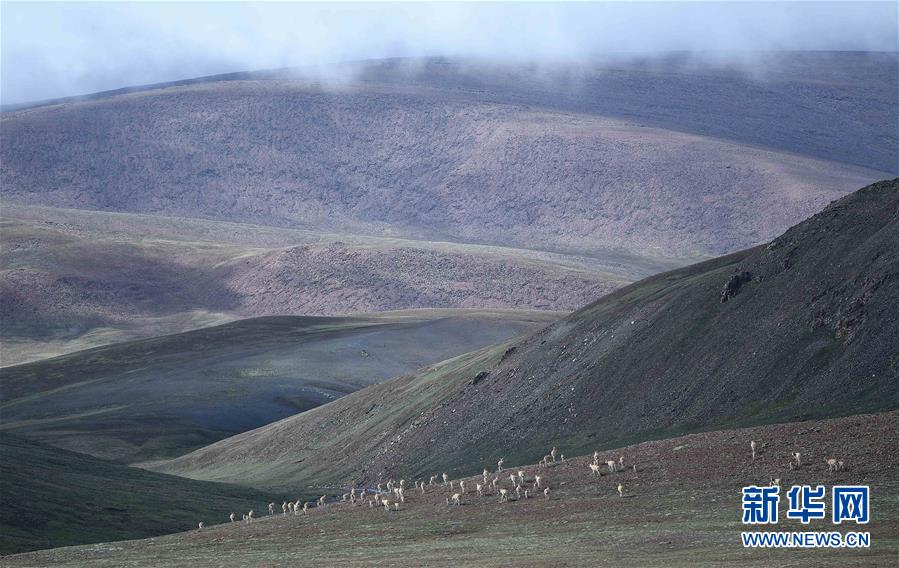 7月7日在可可西里卓乃湖區(qū)域拍攝的一群藏羚羊。目前正值藏羚羊產(chǎn)仔季。來自青海三江源、新疆阿爾金山、西藏羌塘等地的藏羚羊來到位于青海省可可西里腹地、被譽為“藏羚羊大產(chǎn)房”的卓乃湖區(qū)域產(chǎn)仔。新華社記者 張龍 攝