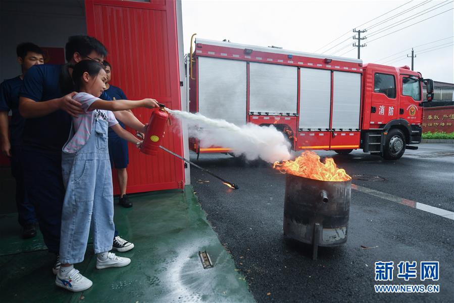 7月16日,東林鎮(zhèn)消防綜合應(yīng)急救援隊(duì)隊(duì)員在給學(xué)生們講解滅火器的使用方法。當(dāng)日,浙江省湖州市吳興區(qū)東林鎮(zhèn)舉辦暑期“安全防護(hù)小超人”主題活動(dòng)?;顒?dòng)由醫(yī)護(hù)人員、消防隊(duì)員等為學(xué)生及家長(zhǎng)講授日常安全避險(xiǎn)及溺水急救知識(shí),中小學(xué)們還在現(xiàn)場(chǎng)學(xué)習(xí)了簡(jiǎn)易包扎、心肺復(fù)蘇的正確方式,并了解滅火器、滅火毯等消防器材的使用,為學(xué)生平安過(guò)暑期打好安全防護(hù)“預(yù)防針”。新華社記者 徐昱 攝