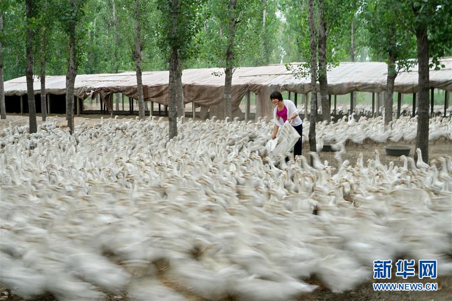 7月15日,河北省灤州市小馬莊鎮(zhèn)佘莊村村民在給鵝群投喂飼料。近年來(lái),河北省灤州市小馬莊鎮(zhèn)充分利用林地資源,大力發(fā)展“林下經(jīng)濟(jì)”,引導(dǎo)農(nóng)民發(fā)展畜禽、食用菌等產(chǎn)業(yè),實(shí)現(xiàn)農(nóng)林資源的優(yōu)勢(shì)互補(bǔ)。目前,小馬莊鎮(zhèn)已發(fā)展林下經(jīng)濟(jì)1000余畝,帶動(dòng)500余名村民實(shí)現(xiàn)增收。新華社記者牟宇攝