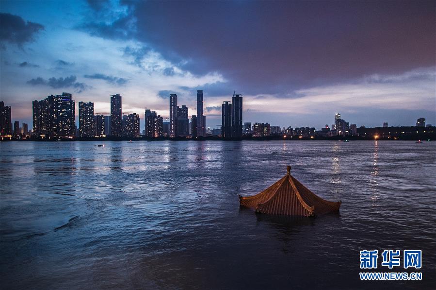 上漲的江水即將淹沒(méi)武昌黃花磯涼亭(7月13日攝)。7月13日17時(shí),長(zhǎng)江干流漢口站水位達(dá)28.74米,較之前的洪峰水位28.77米出現(xiàn)輕微下降。長(zhǎng)江中下游洪水洪峰順利通過(guò)漢口江段。新華社記者肖藝九攝