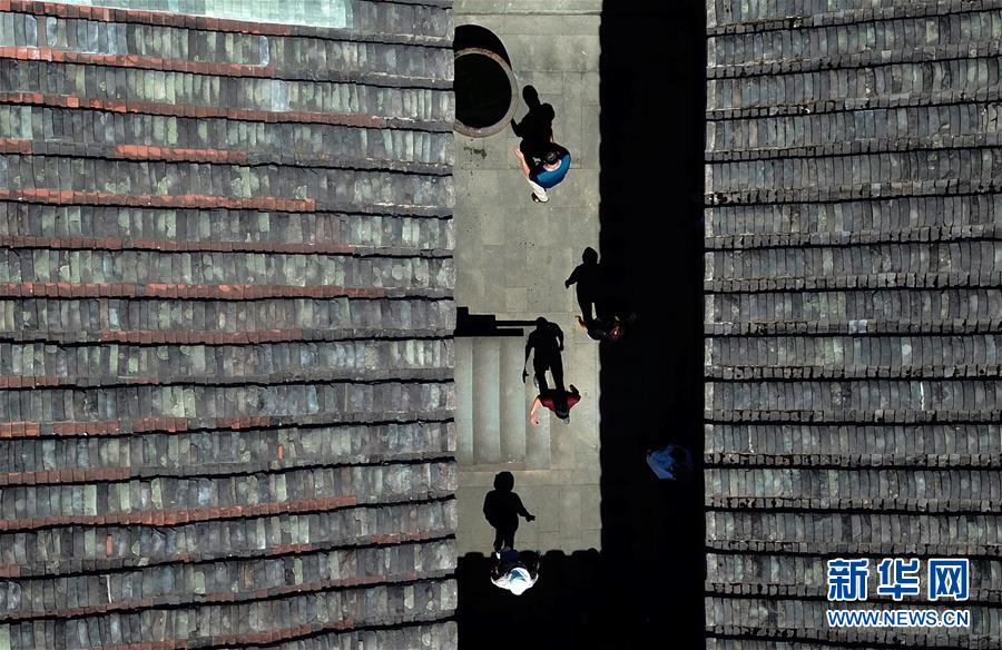 7月19日,游客們在永泰縣同安鎮(zhèn)愛荊莊里觀賞游玩(無人機照片)。近年來,福建省福州市永泰縣重視古莊寨保護與利用工作,遵循“保護為主、修舊如舊”原則,加大修繕保護力度,通過對古莊寨古村落等物質(zhì)載體進行活化利用,打造莊寨+旅游、莊寨+研學(xué)等產(chǎn)業(yè)發(fā)展模式,帶動鄉(xiāng)村振興。永泰縣地處福州西南部,擁有保存較好的古莊寨152座,面積1000平方米以上、年代100年以上98座。新華社記者魏培全攝