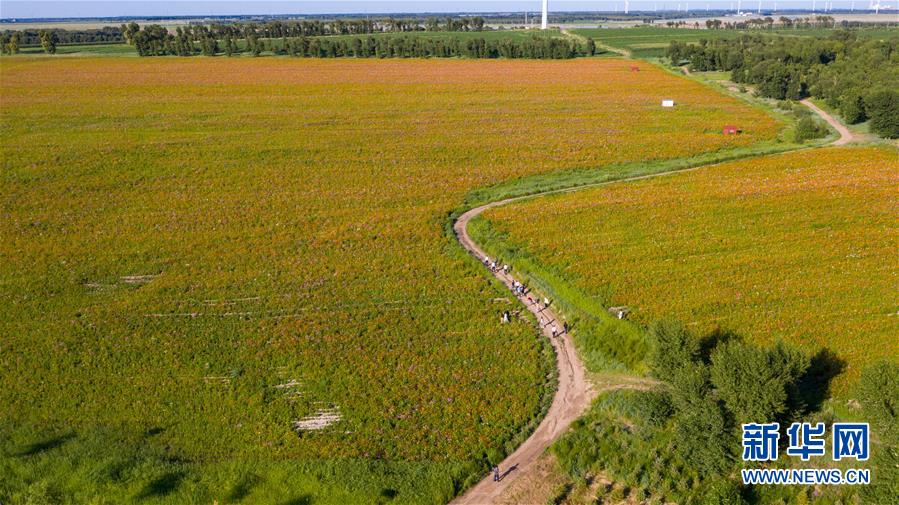 這是查干湖花海景區(qū)(7月20日攝,無(wú)人機(jī)照片)。新華社記者張楠攝