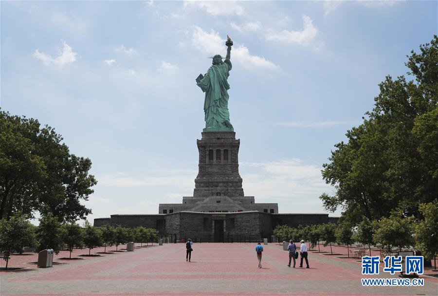 7月20日,參觀者在美國紐約自由島游覽。美國紐約市20日繼續(xù)推進經(jīng)濟重啟計劃,宣布開始進入解封新階段,進一步允許部分低風(fēng)險文娛活動重啟。自由女神像所在的自由島對公眾開放,但雕像內(nèi)部和博物館仍關(guān)閉。新華社記者王迎攝