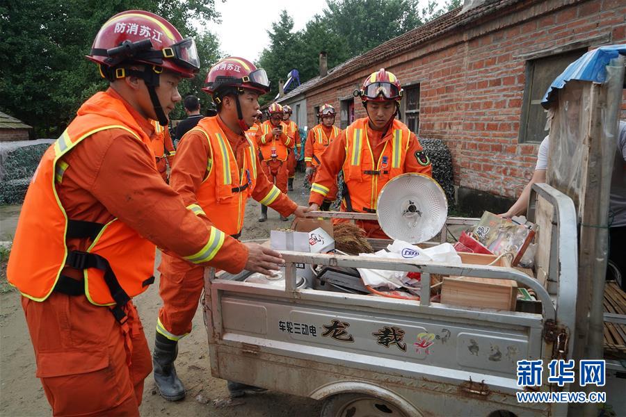 7月23日,淮安市消防救援支隊隊員在盱眙縣鮑集鎮(zhèn)新遷村幫助村民轉(zhuǎn)移車輛。當日,受淮河盱眙段水位上漲影響,江蘇省淮安市盱眙縣啟動鮑集圩行洪區(qū)萬余名群眾撤離轉(zhuǎn)移工作,確保安全度汛。新華社記者韓瑜慶攝