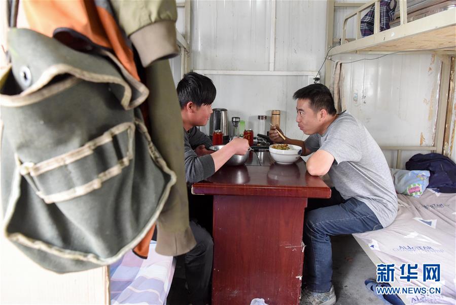 中鐵一局的施工人員打完水返回宿舍(7月19日攝)。新華社記者 丁磊 攝