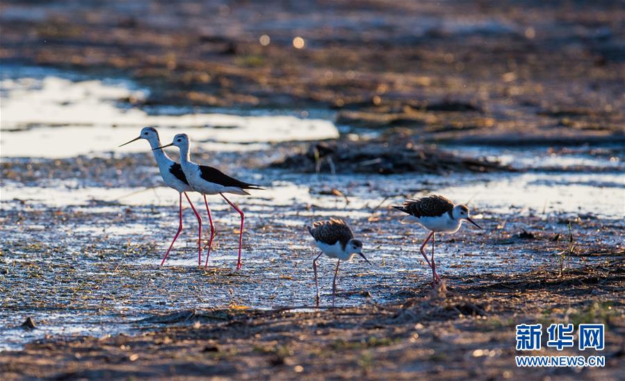 7月28日,長(zhǎng)腳鷸在桃力廟—阿拉善灣海子覓食。鄂爾多斯?jié)竦匚挥趲觳箭R沙漠、毛烏素沙地接壤地帶,2002年被列入國(guó)際重要濕地名錄。從2006年開始,由于濕地湖面萎縮、湖心島消失,在此筑巢繁殖的世界瀕危物種遺鷗幾近消失。近年來,當(dāng)?shù)夭扇《喾N治理措施,濕地生態(tài)環(huán)境逐步好轉(zhuǎn)。2019年起,濕地內(nèi)的桃力廟—阿拉善灣海子迎來遺鷗大規(guī)?!盎貧w”。如今,40多種鳥類在此棲息,鄂爾多斯?jié)竦刂匦鲁蔀轼B類的樂園。新華社記者連振攝