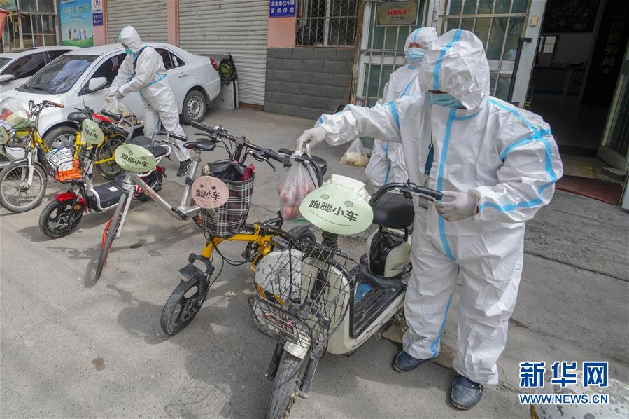 8月3日,在烏魯木齊天山區(qū)西河壩前街社區(qū),社區(qū)工作人員準(zhǔn)備騎上”跑腿小車(chē)“為居民送去生活物品。新疆烏魯木齊市天山區(qū)西河壩前街社區(qū)主次干道較多,院落分布分散。新冠肺炎疫情防控期間,社區(qū)整合現(xiàn)有資源,將暫時(shí)閑置的自行車(chē)、電動(dòng)車(chē)集中起來(lái),貼上“跑腿小車(chē)”標(biāo)識(shí),成立便民服務(wù)隊(duì),社區(qū)工作人員通過(guò)“跑腿小車(chē)”可將居民網(wǎng)絡(luò)定制的“菜袋子”“藥盒子”快速送達(dá),給居民帶來(lái)方便。新華社記者趙戈攝