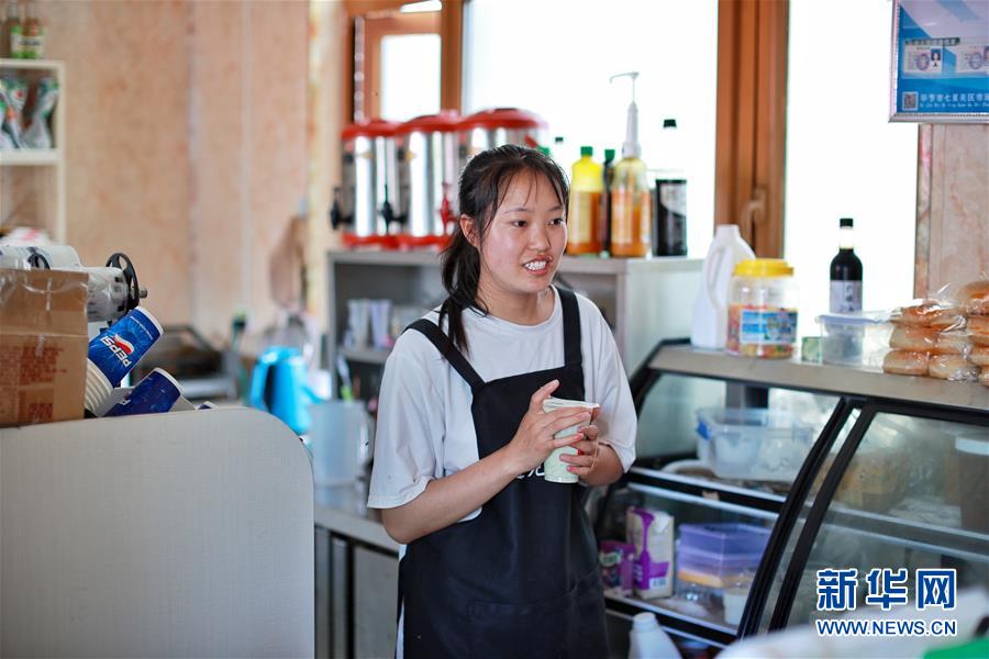 劉林在柏楊林易地扶貧搬遷安置點的一家奶茶店打工,她一個月可以掙2000多元(8月3日攝)。貴州省畢節(jié)市七星關(guān)區(qū)柏楊林易地扶貧搬遷安置點是畢節(jié)市最大的易地扶貧搬遷安置點,總面積約1.1平方公里,從2017年開始至今,共有34個鄉(xiāng)鎮(zhèn)6372戶29001人安置到位。如今,安置點內(nèi)教育、醫(yī)療、就業(yè)扶貧車間、長幼日間托養(yǎng)照料中心等設(shè)施齊全,搬遷群眾在這里過上了安居樂業(yè)的幸福生活。新華社記者劉續(xù)攝