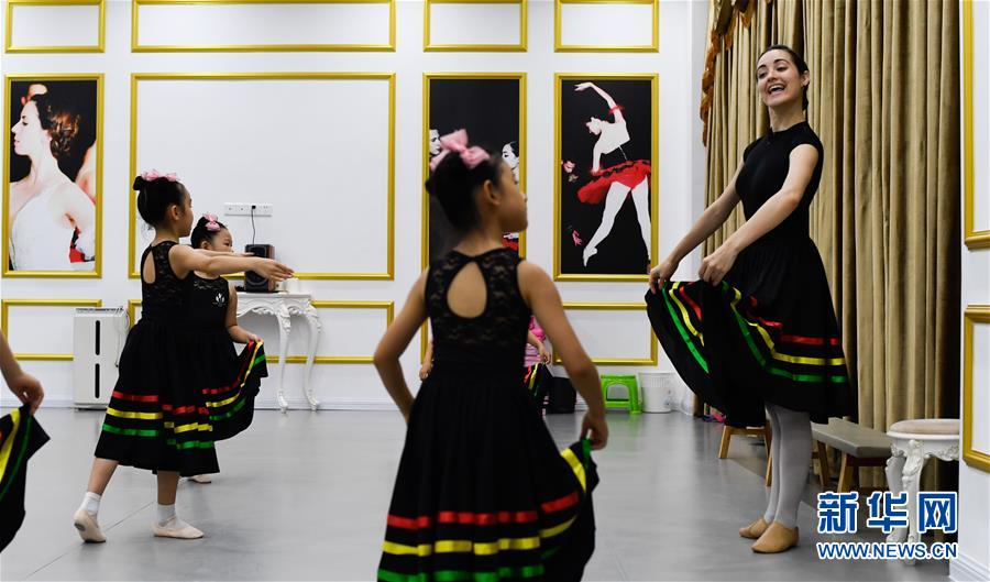 在三亞吉普西芭蕾學(xué)校鴻洲校區(qū),老師在指導(dǎo)學(xué)員練習(xí)芭蕾舞(8月4日攝)。暑假期間,海南三亞不少孩子來到芭蕾舞學(xué)校學(xué)習(xí),在老師指導(dǎo)下學(xué)習(xí)了解芭蕾舞,感受芭蕾藝術(shù)的魅力,豐富假期生活。新華社記者楊冠宇攝