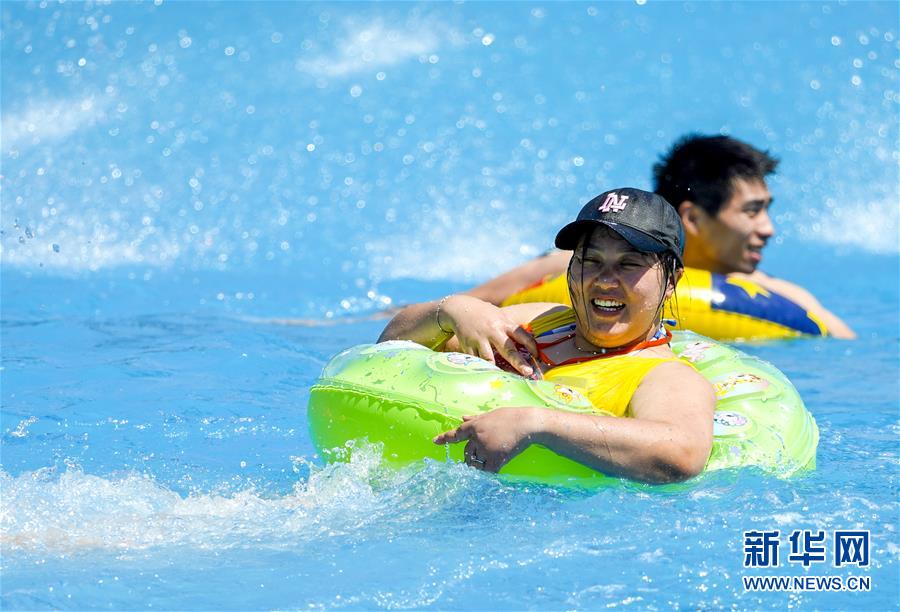 8月5日,重慶涪陵紅酒小鎮(zhèn)水上樂園內,市民在水中嬉戲。當日,重慶市氣象臺再次發(fā)布“高溫橙色預警信號”,重慶大部分海拔400米以下地區(qū)日最高氣溫將升至37℃以上,局地可達40℃以上。許多重慶市民涌進當?shù)氐乃蠘穲@和泳池,在水中享受夏季的清涼。新華社記者劉潺攝