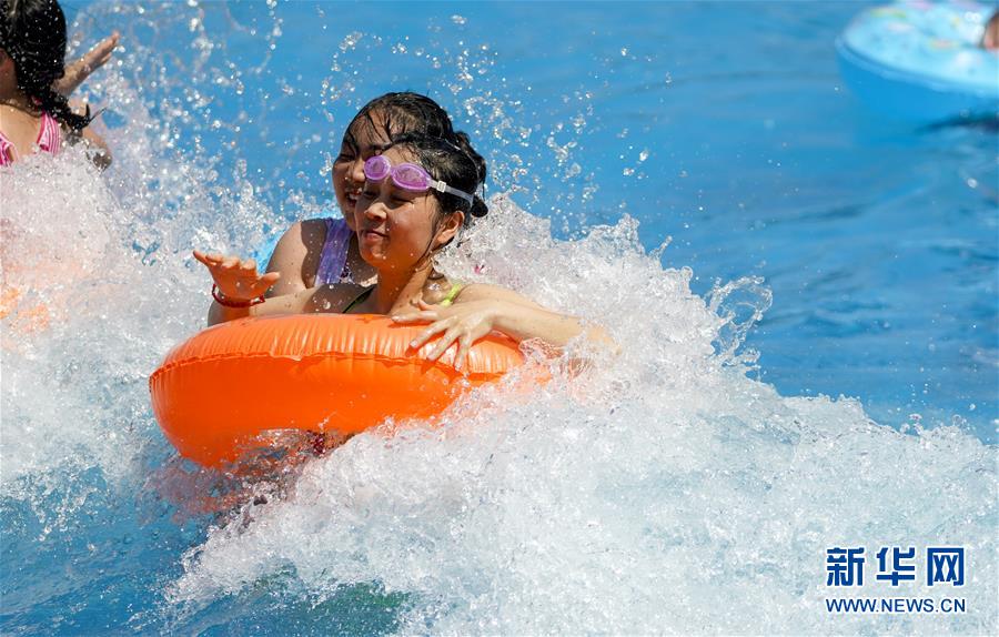 8月5日,重慶涪陵紅酒小鎮(zhèn)水上樂園內,市民在水中嬉戲。當日,重慶市氣象臺再次發(fā)布“高溫橙色預警信號”,重慶大部分海拔400米以下地區(qū)日最高氣溫將升至37℃以上,局地可達40℃以上。許多重慶市民涌進當?shù)氐乃蠘穲@和泳池,在水中享受夏季的清涼。新華社記者劉潺攝