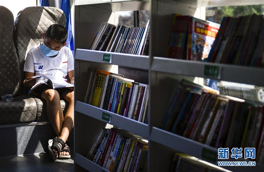 8月5日,小讀者在“流動圖書館”里看書。三千冊圖書,一輛大巴車,穿梭在城市的街頭巷尾。在吉林長春,長春市圖書館利用流動圖書車,定期在市內(nèi)15個固定服務(wù)點(diǎn)間巡回流動,為市民提供便捷的圖書借閱服務(wù)。新華社記者許暢攝